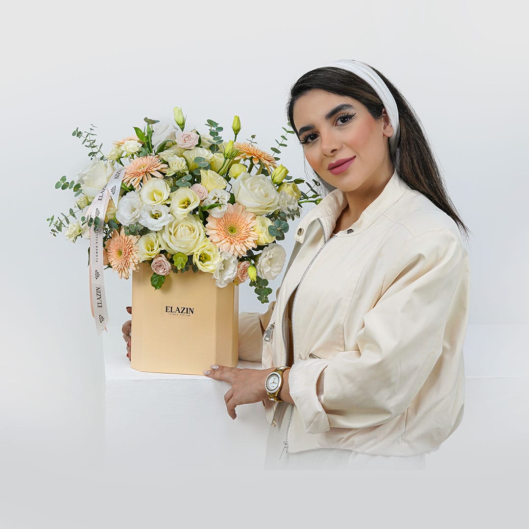گلهای به کار رفته: رز، لیسینتوس، رز مینیاتوری، ژربرا، برگ های زینتی