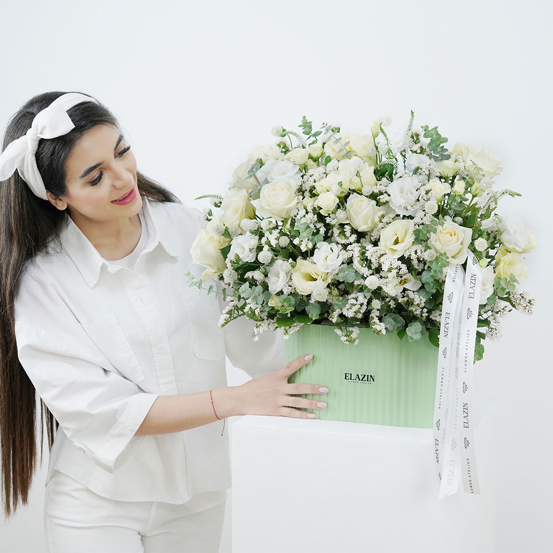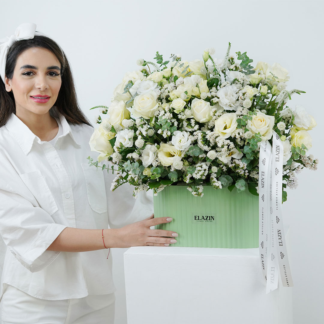 گلهای مصرفی : رز، لیسینتوس، ورونیکا، زنبوری، گل های زینتی، برگ های زینتی