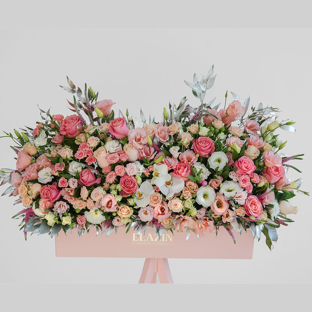 گلهای به کار رفته : رز، رز مینیاتوری، لیسینتوس، ارکیده، ورونیکا