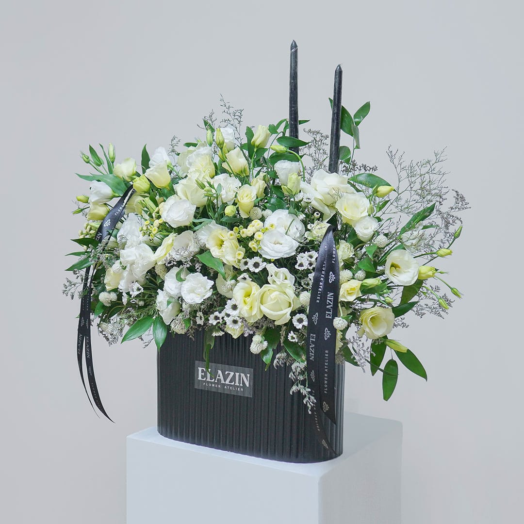 گلهای به کار رفته : لیسینتوس، رز، داوودی، بابونه ای، مخلصه