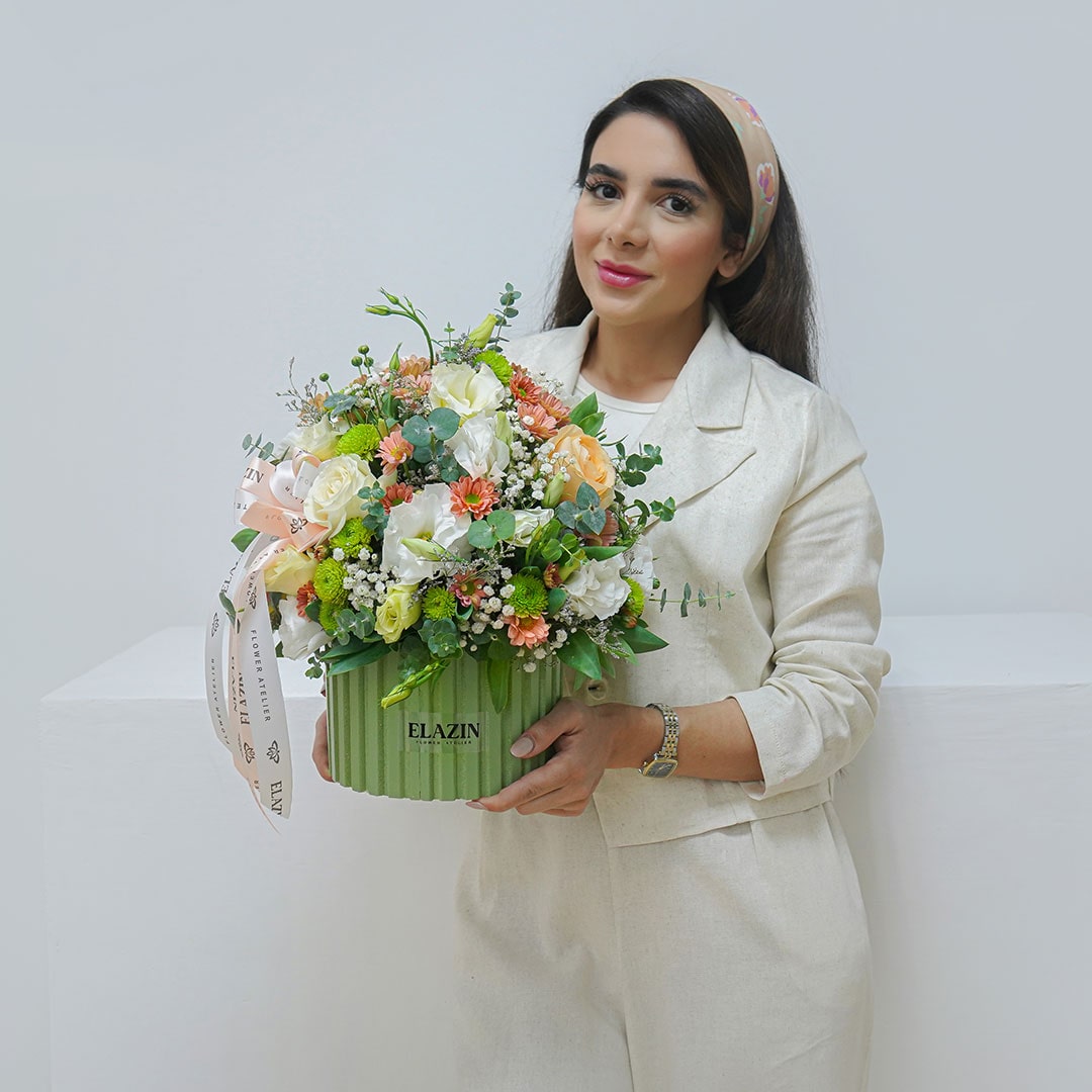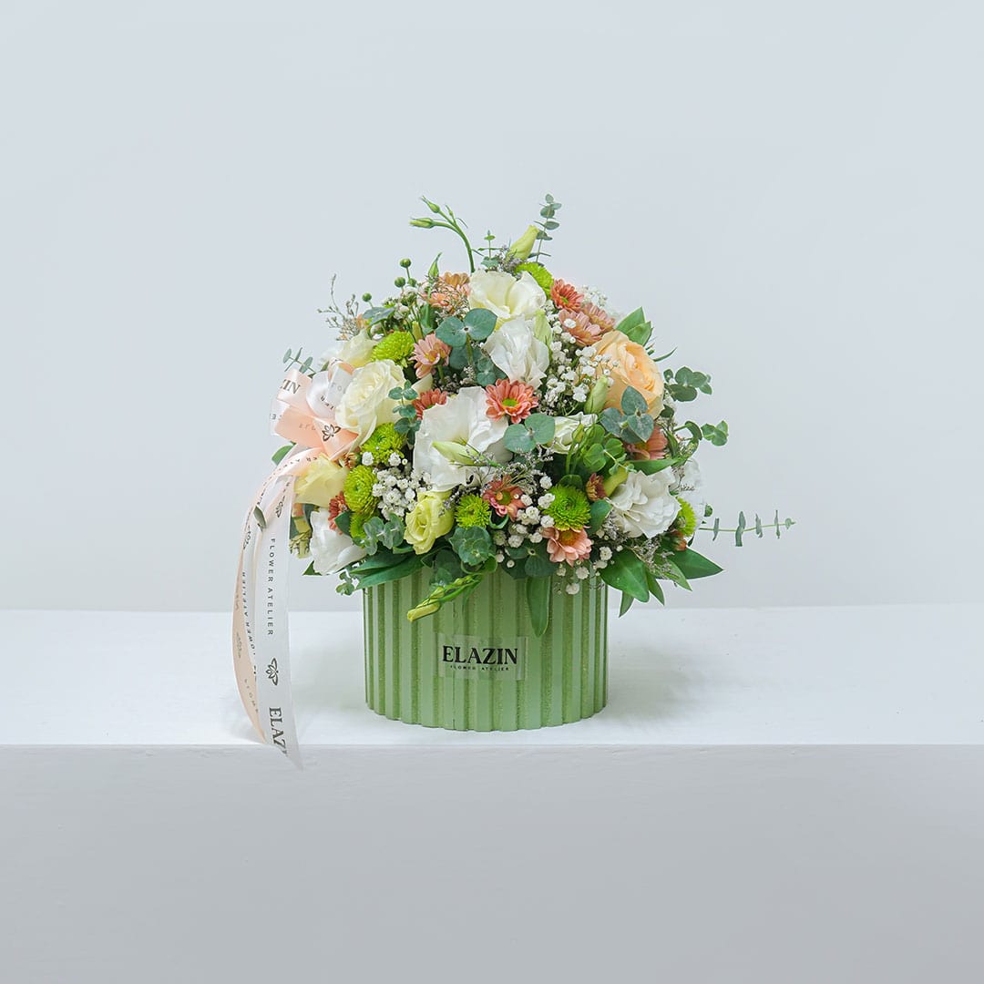 گلهای به کار رفته: رز، داوودی، لیسینتوس، عروس، اکالیپتوس