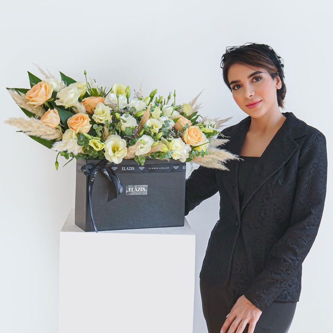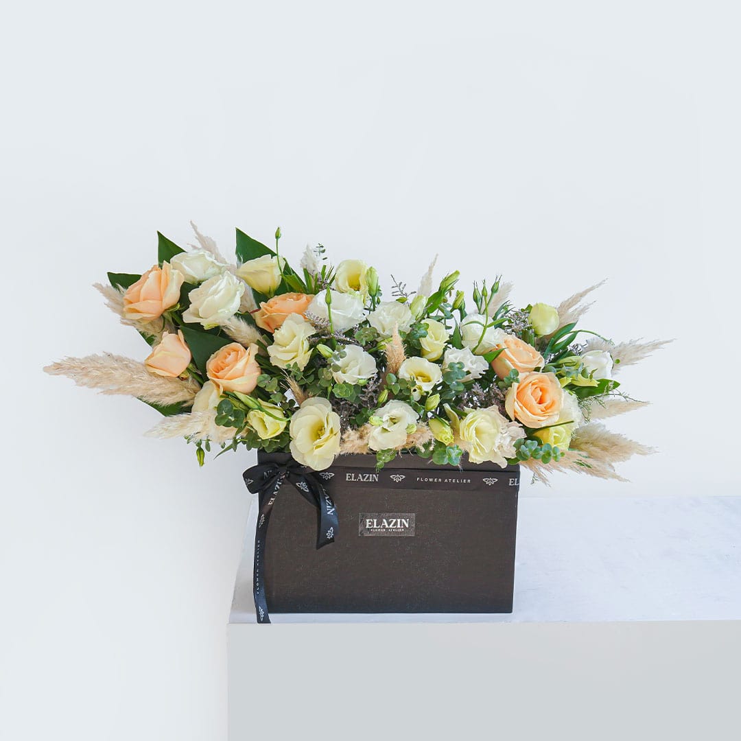 گلهای به کار رفته : لیسینتوس، رز، برگهای زینتی