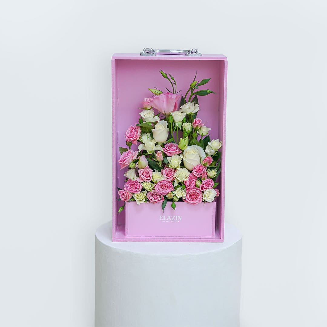 گلهای به کار رفته : رز مینیاتوری، لیسینتوس