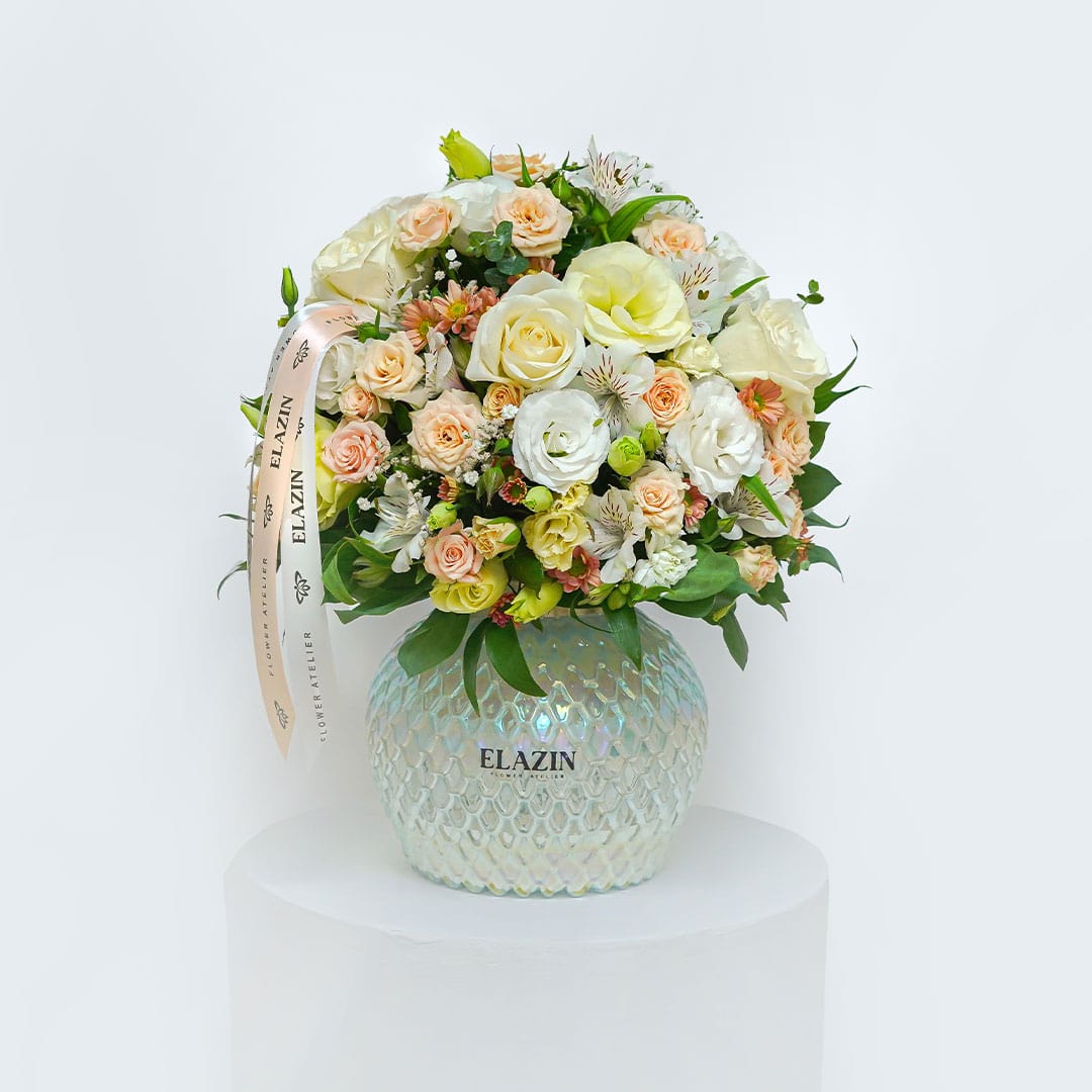 گلهای به کار رفته : رز، رز مینیاتوری، لیسینتوس، آلستر، داوودی، بابونه ای