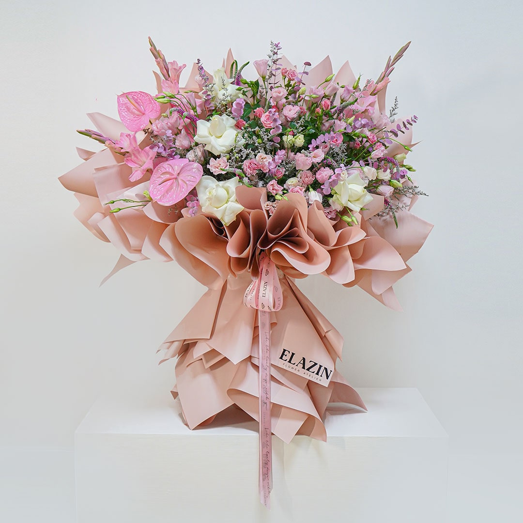 گلهای به کار رفته: آنتریوم، گلایل، رز، لیسینتوس، رز مینیاتوری، ورونیکا، برگ های زینتی
