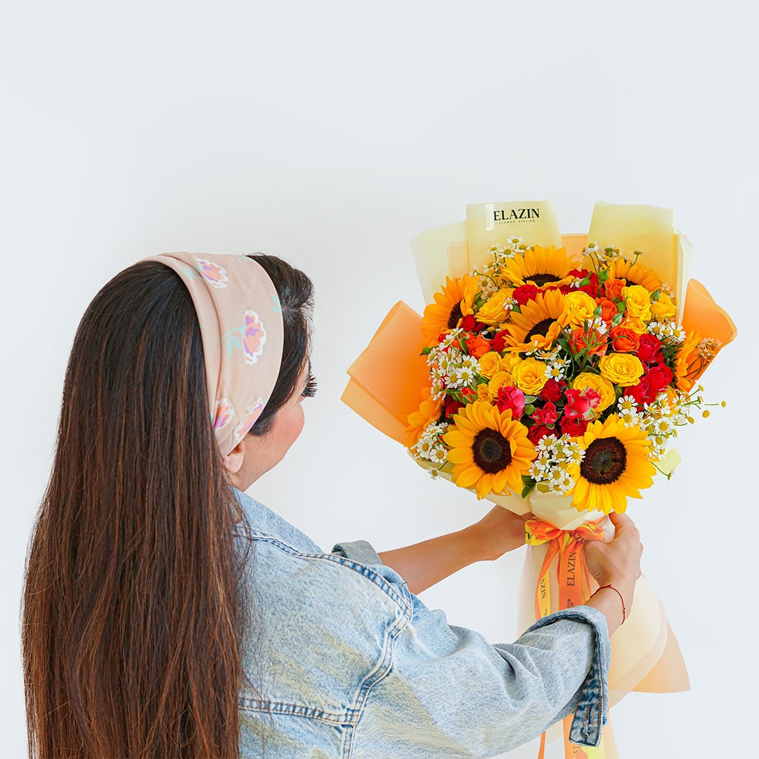 گلهای به کار رفته : آفتابگردان، رز مینیاتوری، بابونه