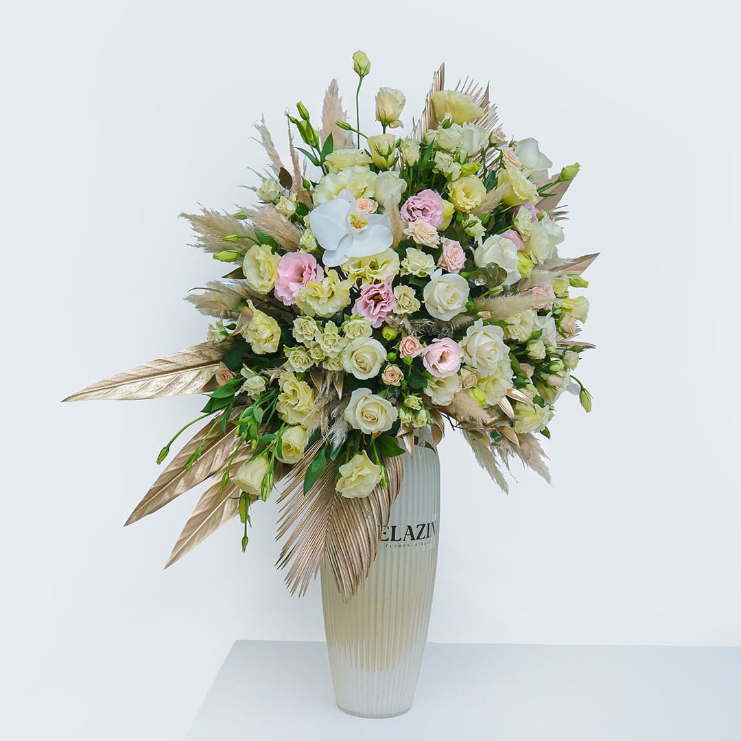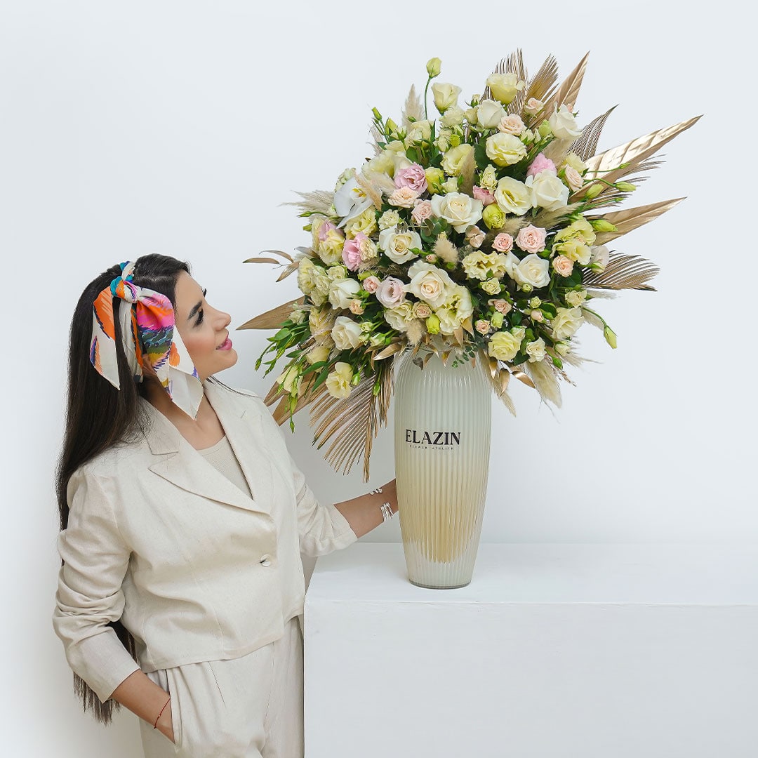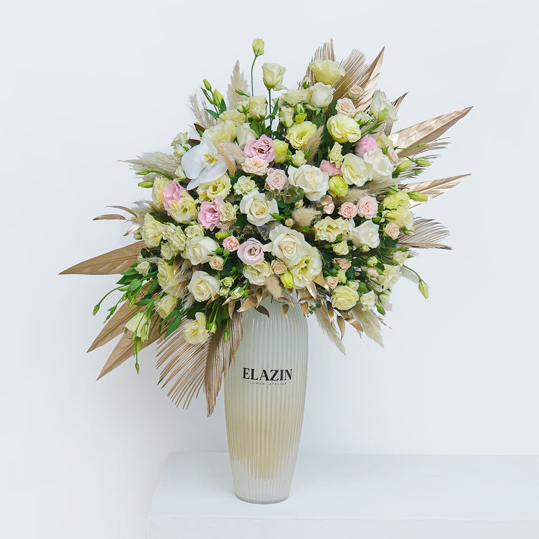 گلهای به کار رفته : رز، رز مینیاتوری، لیسینتوس، ارکیده