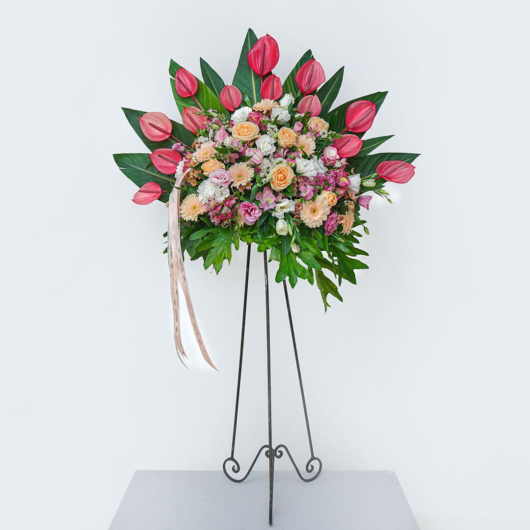 گلهای به کار رفته : ژربرا، آلستر، رز، آنتریوم، داوودی، برگ های زینتی