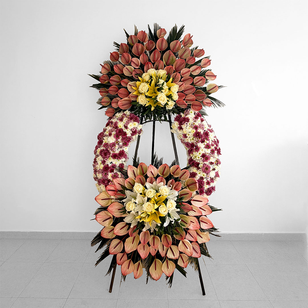 گلهای به کار رفته : آنتریوم، اورینتال، رز، داوودی، برگهای زینتی