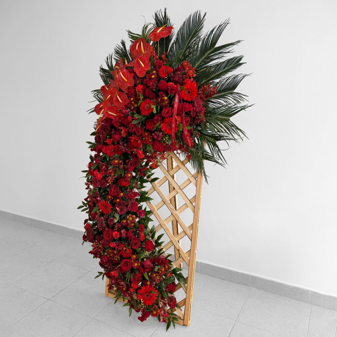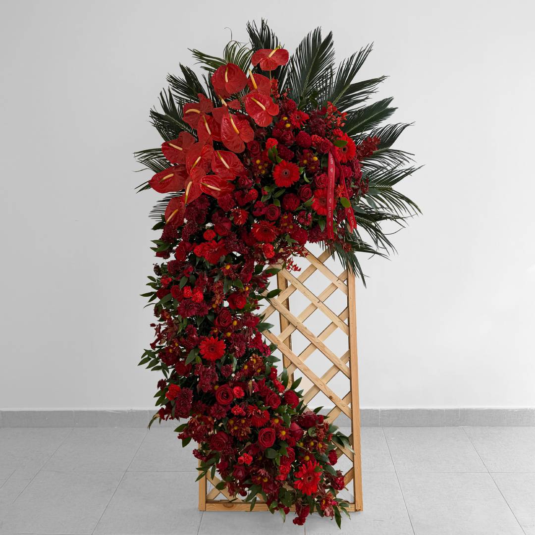 گلهای به کار رفته: آنتریوم، رز، ژربرا، تاج خروس، داوودی، داوودی بابونه ای، میخک